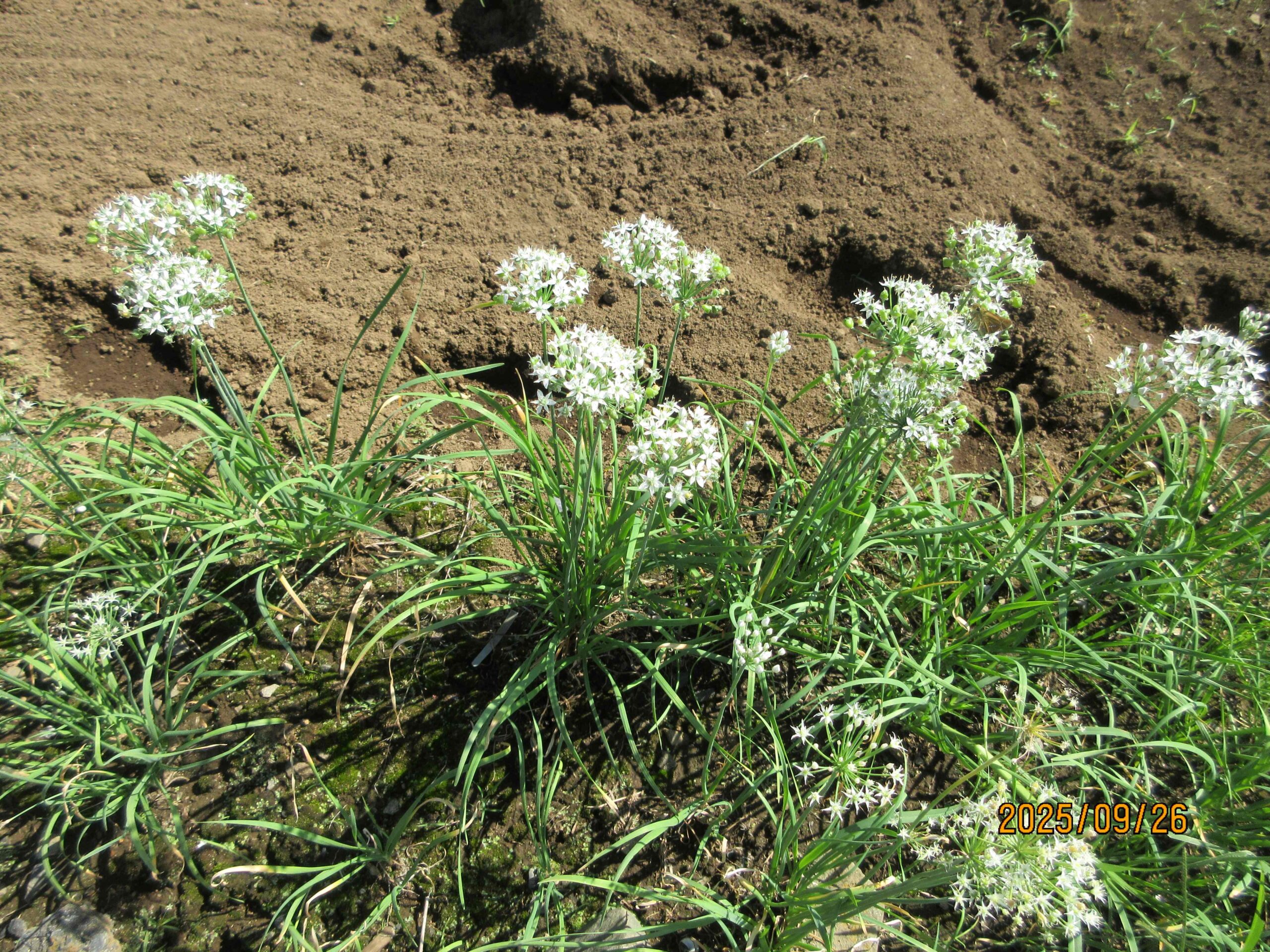 (2)田んぼの畔に白いニラの花