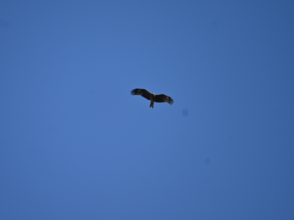 (4)観察会のまとめが終わり、解散!のタイミングでトビとノスリが上空に。